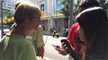Học sinh tò mò hỏi "bạn biết nói tiếng Việt không" cho một người nước ngoài.