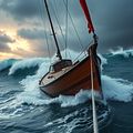 (Chiếc thuyền bập bà bập bềnh giữa cơn bão.)