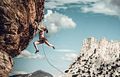 The tenacious climber reached the mountain peak.