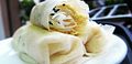Tương tự như món gỏi cuốn, bò bía ngọt cũng sử dụng bánh tráng để cuốn các nguyên liệu.