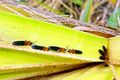 Coconut hispine beetle is a leaf beetle that feeds on young leaves and damages seedlings and mature coconut palms.