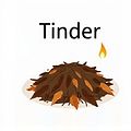 The tinder caught fire quickly in the wind.
