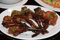 Chả chìa là món ăn bằng sườn heo chặt khúc ngắn, tuốt thịt về một đầu, chiên vàng và rang ngọt.