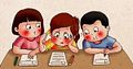 Cô ấy nhờ bạn chỉ bài nhanh trước giờ kiểm tra.
