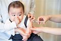 Bác sĩ chích vào cánh tay của bệnh nhân.
