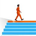 (Anh ấy dừng lại ở bậc thang giữa trước khi tiếp tục lên cầu thang.)