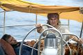 The boat was adrift in the middle of the ocean with no land in sight.