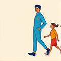 (Anh ta dắt đứa trẻ đi mà không nói gì.)