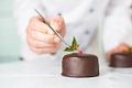 Đầu bếp bánh ngọt làm một chiếc bánh sô cô la ngon.