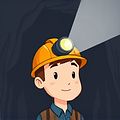 Đèn đeo trên đầu thợ mỏ chiếu sáng đường hầm tối.