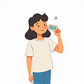 (Cô ấy kiểm tra nhiệt độ bằng tay.)