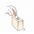 He gouges into the wood.