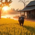 Cánh đồng chuyển hoàng dưới ánh nắng chiều.