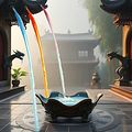 She combined different colors to create a vibrant painting.