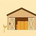 Agricultural storage mô tả một nơi bảo quản các sản phẩm nông nghiệp, bao gồm lúa, ngô, và các loại hạt khác.