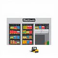 The supermarket chain maintains a large stock warehouse for essential goods.