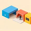 The factory includes an auxiliary area for equipment storage and maintenance.