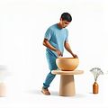 He is learning the art of pottery from a local craftsman.