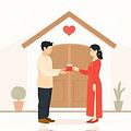 (Cặp vợ chồng mới cưới mang quà và bày tỏ sự kính trọng đối với cha mẹ cô dâu.)