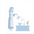 (Nước thánh thường được sử dụng trong nghi lễ rửa sạch các đồ thờ.)