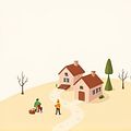 (Làng nhỏ yên tĩnh này chỉ có vài ngôi nhà rải rác.)