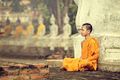 The religious practitioner led the morning prayers at the Buddhist temple.