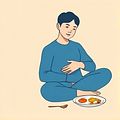 He felt full after eating a large meal.