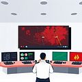 An emergency control hub coordinates firefighting efforts and communicates with first responders during incidents.