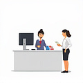 Service Counter mô tả nơi cung cấp dịch vụ cho khách hàng, đặc biệt là các dịch vụ tại ngân hàng, khách sạn hoặc cửa hàng.