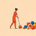 “Quét lại thành đống” là hành động dọn sạch và gom đồ vật thành một chỗ.