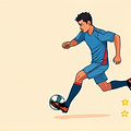 (Cầu thủ rê bóng cẩn thận để duy trì kiểm soát bóng.)