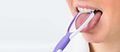 She scraped her tongue gently.