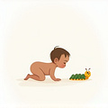 (Em bé rúc bò qua sàn.)