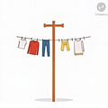(Đồ giặt được treo trên cột phơi khô để phơi dưới ánh nắng mặt trời.)