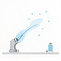 A compressed air blower efficiently removes dust from surfaces.
