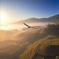 (Mưa rơi khắp mọi nơi trong thung lũng.)