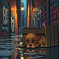 Con chó bị bỏ rơi trông thật tội nghiệp dưới mưa.
