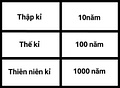 - decade (thâp kỷ): I've been living for almost three decades now. (Bây giờ tôi đã sống được gần ba thập kỷ.)