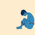(Anh ấy ngồi lặng lẽ, đầy chán nản.)