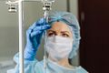 Y tá truyền nước cho bệnh nhân.