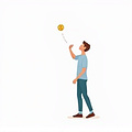 Anh ấy tung quả bóng lên không trung.