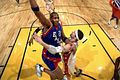 Anh ấy chơi ở vị trí trung phong trong đội bóng rổ.