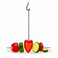 She skewered the vegetables neatly.