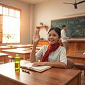 Bạn ấy giơ tay xin đi ra ngoài.